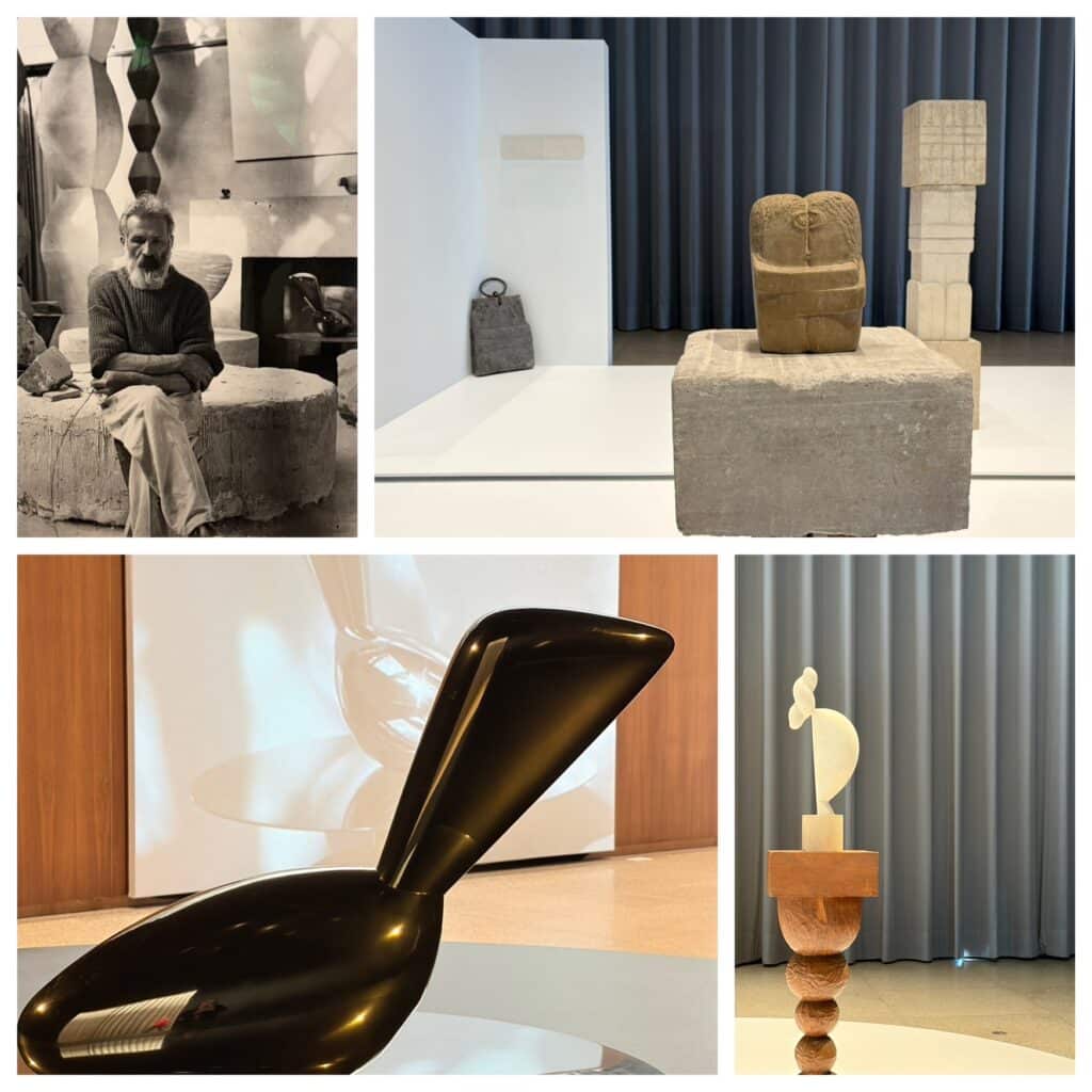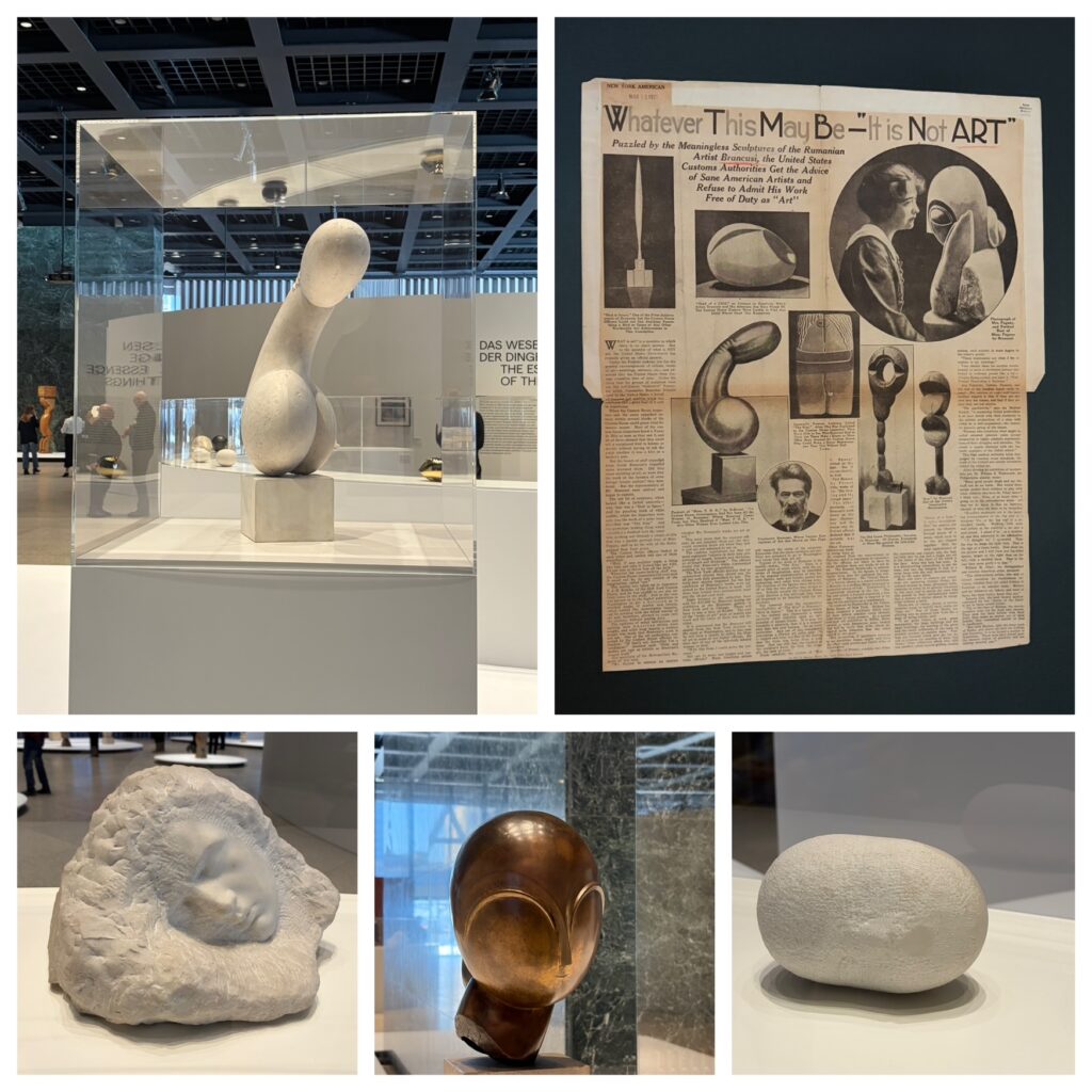 Ständig war er auf der Suche nach der perfekten Form, reduzierte die Figur auf das Wesentliche bis in die pure Abstraktion. Sein Ideal fand er in hochpolierten Köpfen, die einem Ei, Kieselstein oder einer Zelle ähneln. Seine Vereinfachung war radikal, neu und seiner Zeit voraus. Immer wieder tauchen die endlose Säule, der Kuss, die schlafende Muse und Vögel im Raum als Motive bei ihm auf.